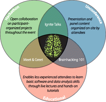 A hackathon is a collaborative event that focuses on the open sharing of ideas, models, code, and data. They bring together brain experts and enthusiasts from a variety of backgrounds to build relationships, learn from one another, and collaborate on projects related to the neurosciences.
